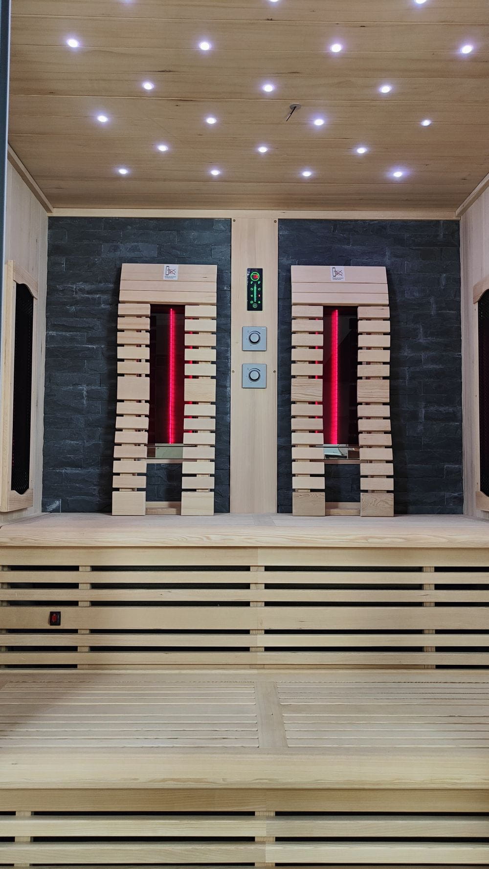 W saunie na podczerwień KIRUNA zamontowanych jest 6 kwarcowych promienników podczerwieni. Ich spektrum promieniowania to IR-A, IR-B oraz IR-C.