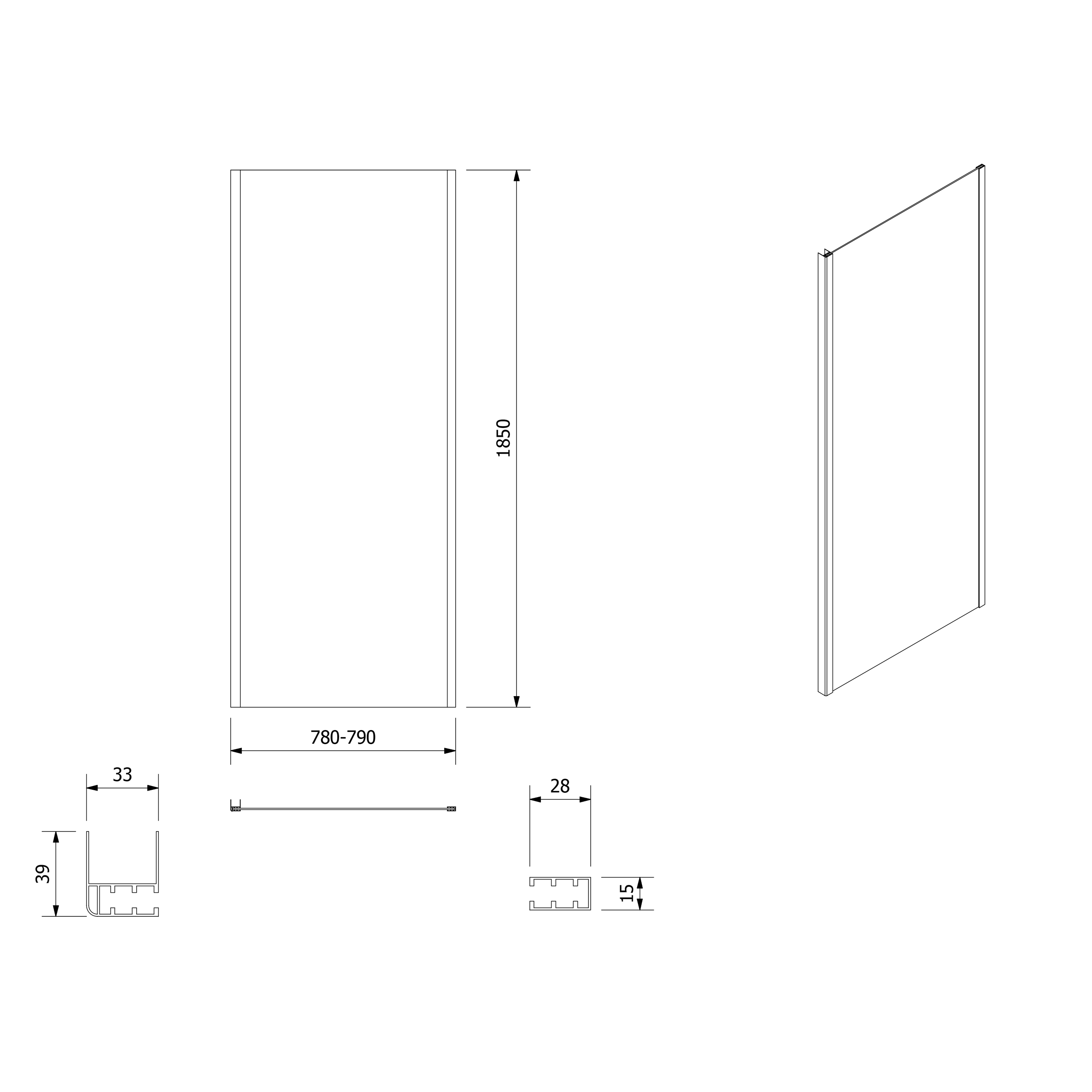 AMADEO Ściana boczna 80x185 cm BTP80 Aqualine