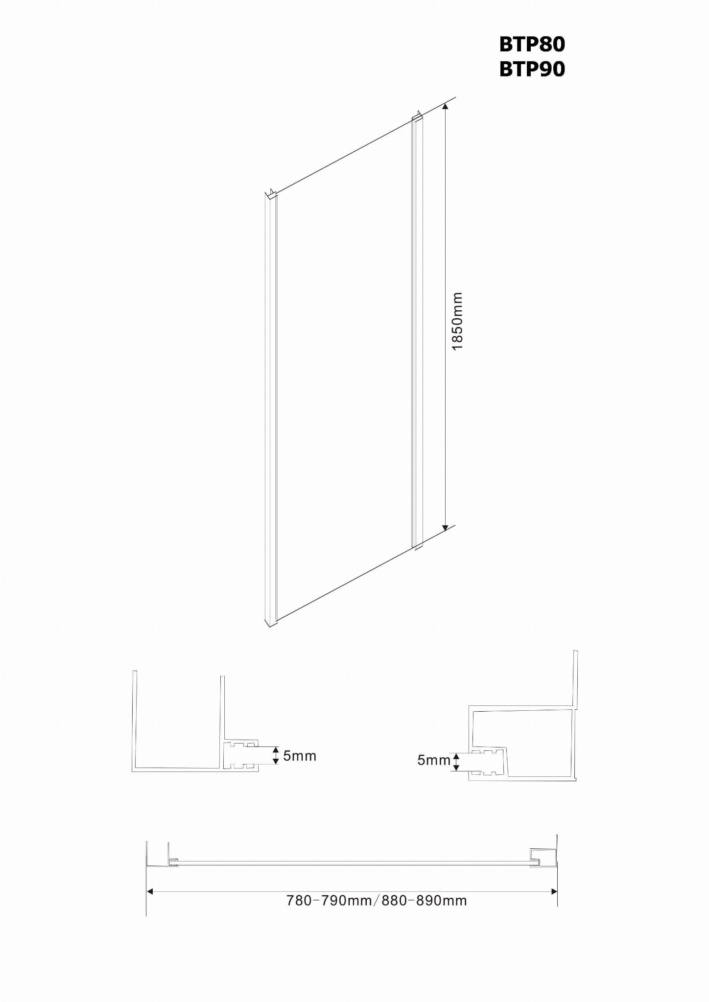 AMADEO Ściana boczna 90x185 cm BTP90 Aqualine