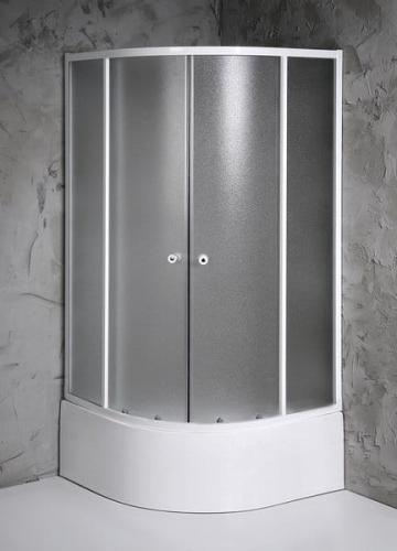 Kabina prysznicowa półokrągła, profil biały w szkle matowym do kompletowania z wysokim brodzikiem.