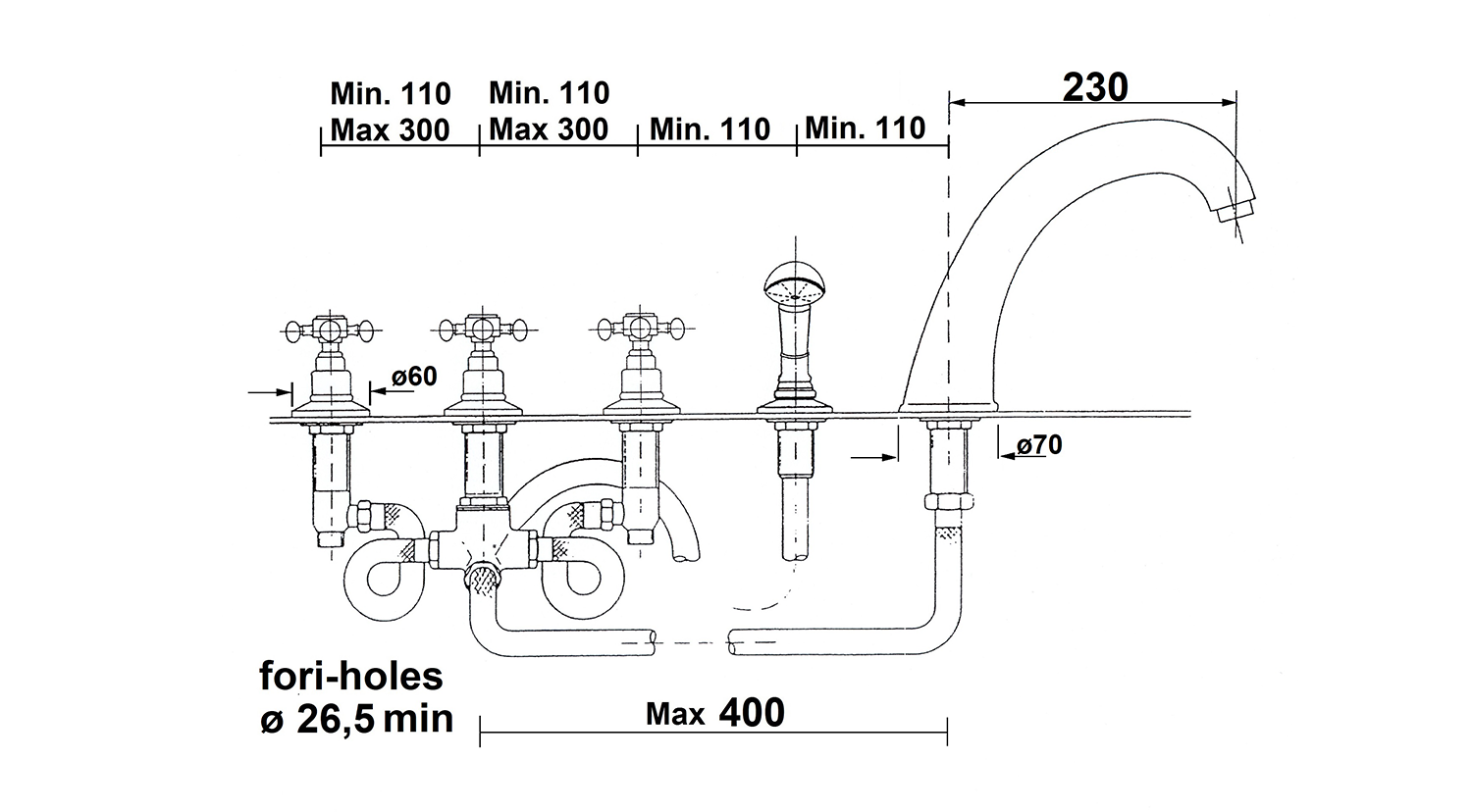 Bateria doskonale skomponuje się z wnętrzem łazienki w stylu retro. Charakteryzuje się wysoką jakością i precyzją wykonania.