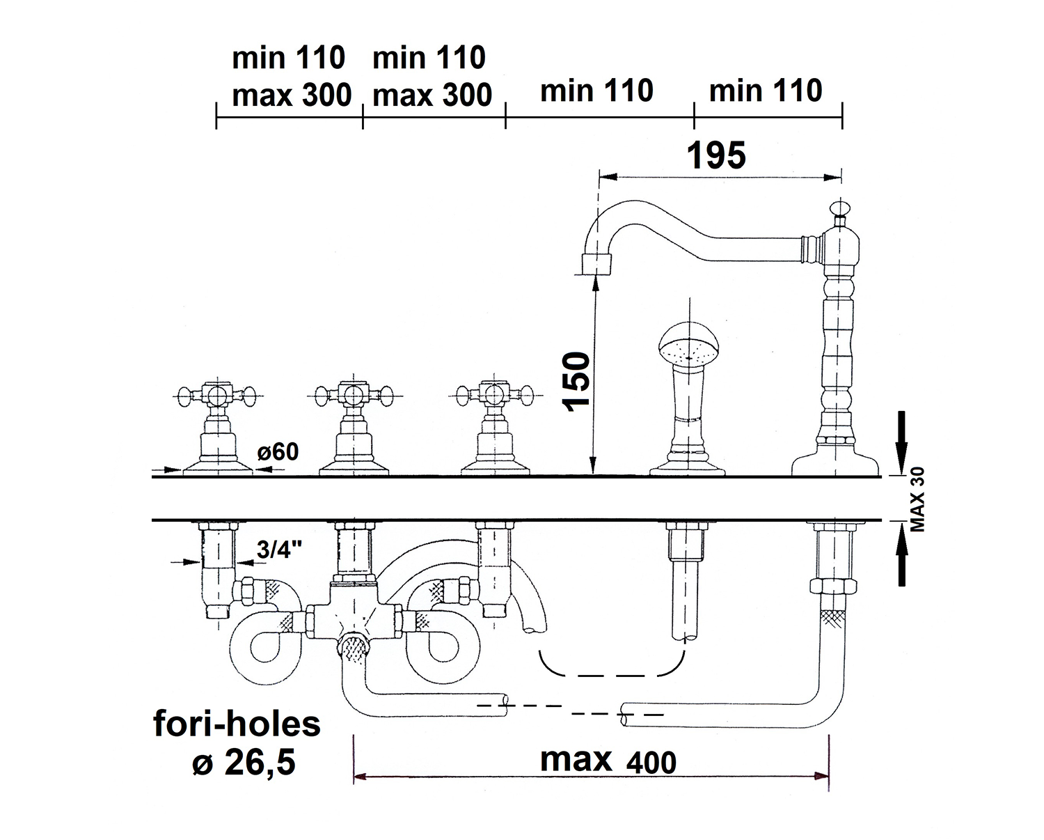 Bateria doskonale skomponuje się z wnętrzem łazienki w stylu retro. Charakteryzuje się wysoką jakością i precyzją wykonania.