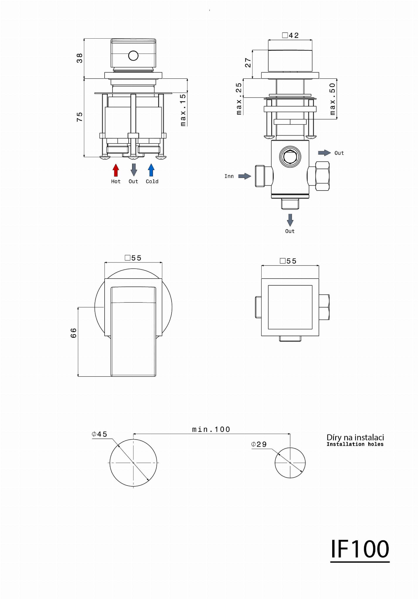 Bateria nawannowa dwuotworowa z przełącznikiem chrom INFINIT IF100 Sapho