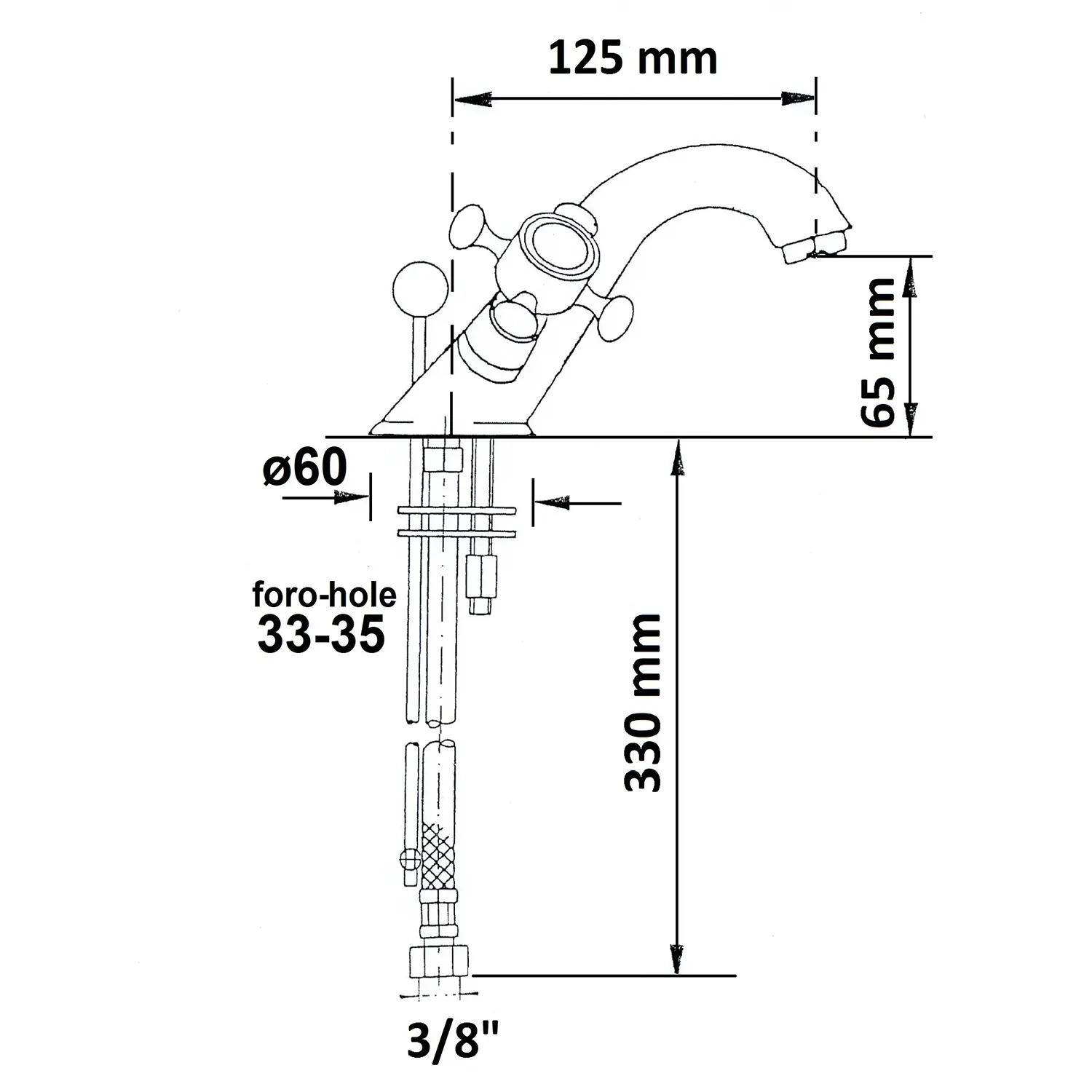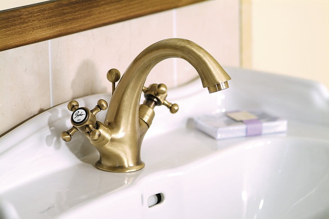 Bateria umywalkowa mosiężna, stojąca art.3176 z dwoma kurkami. Bateria o klasycznych kształtach. Doskonale skomponuje się z wnętrzem łazienki w stylu retro. Charakteryzuje się wysoką jakością i precyzją wykonania.