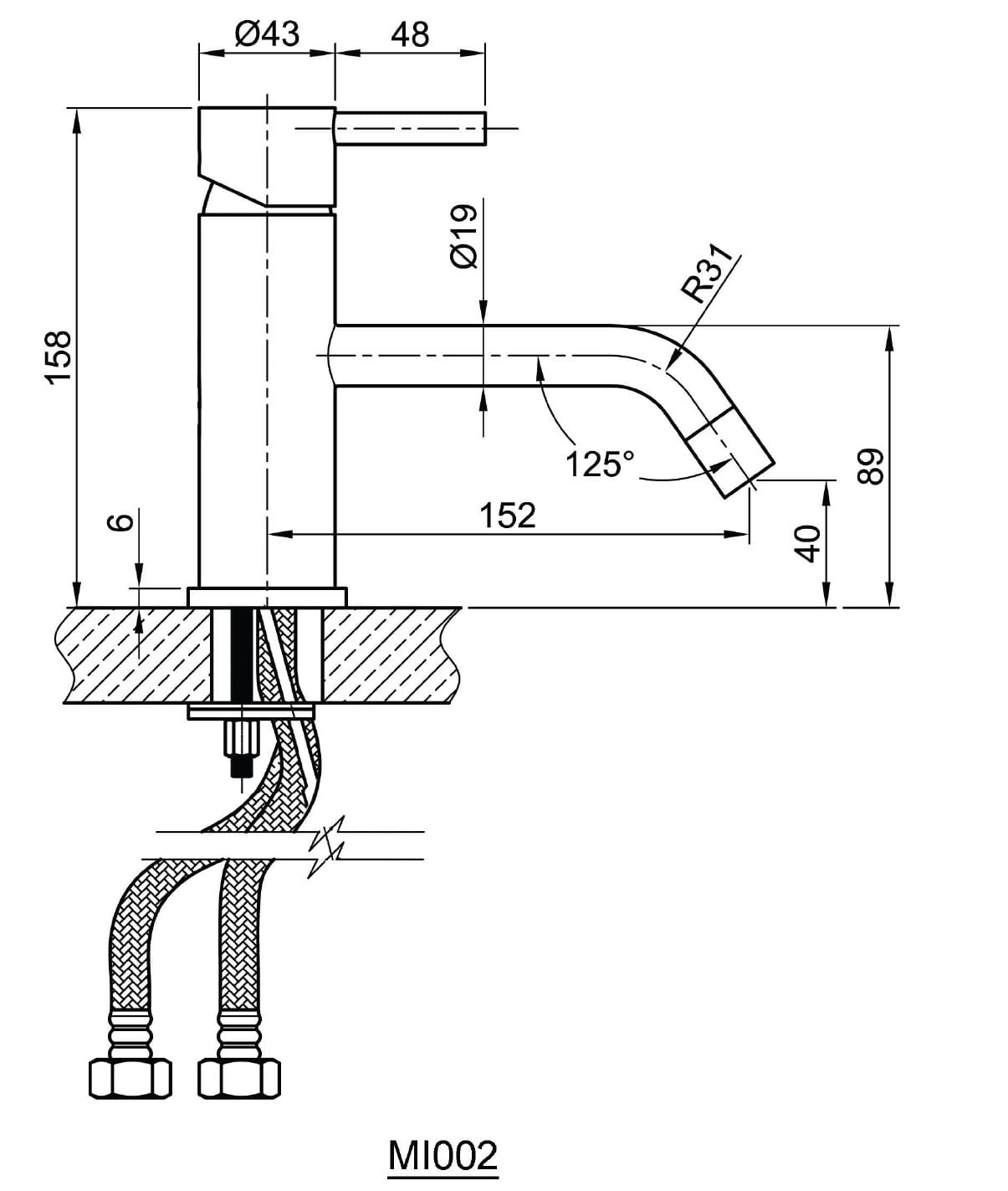 Bateria umywalkowa stojąca stal nierdzewna MINIMAL MI002 Sapho