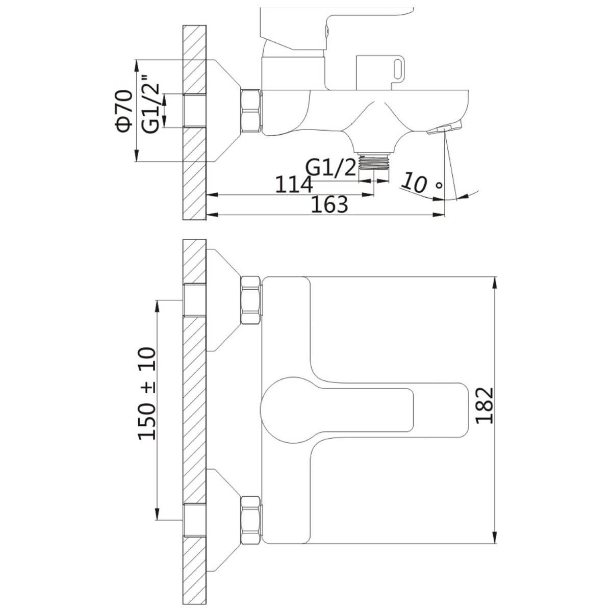 - instalacja: ścienna 150 mm