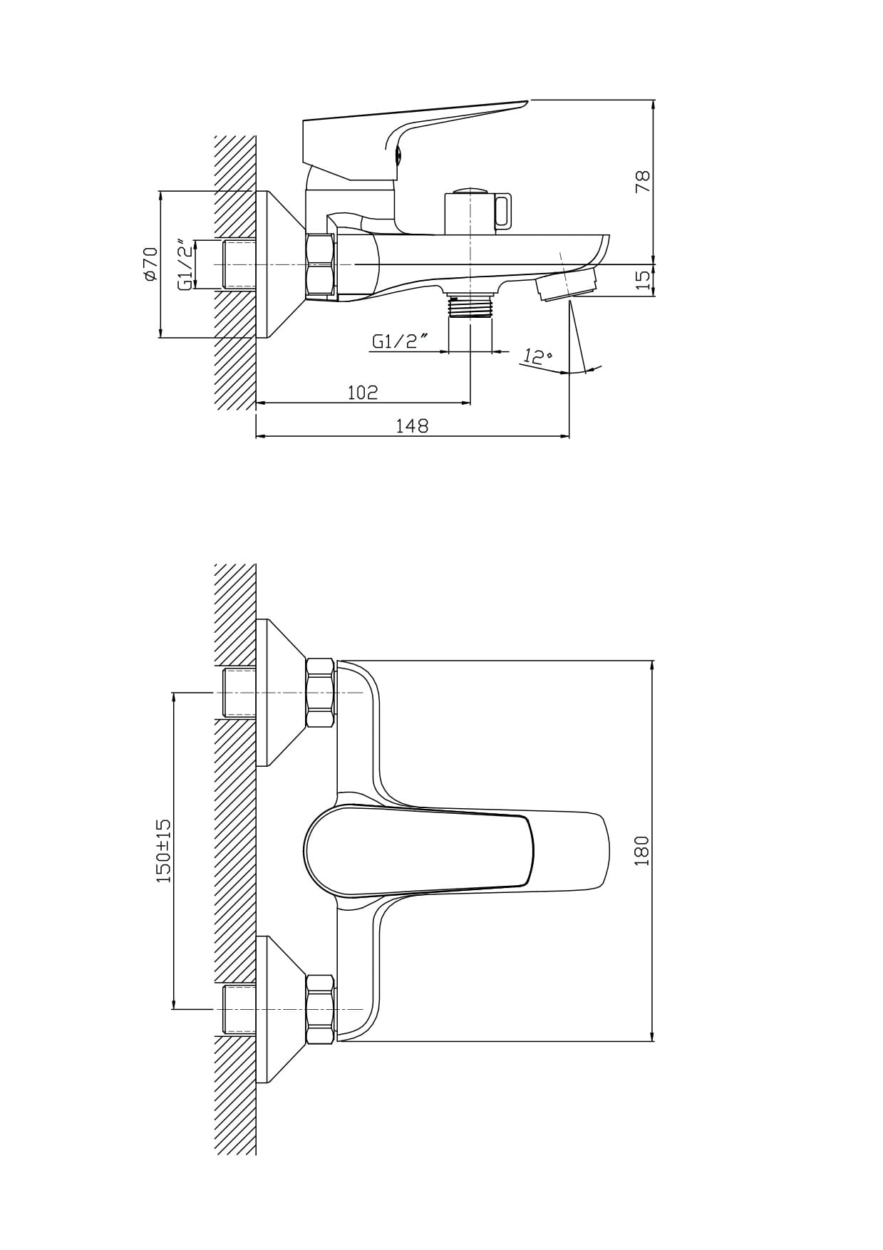Bateria wannowa ścienna chrom połysk LOTTA LT610 Aqualine