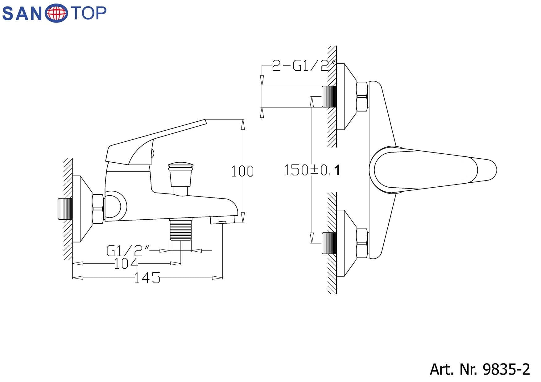 Bateria wannowa ścienna chrom połysk SANOTOP 9835-2 Sanotechnik