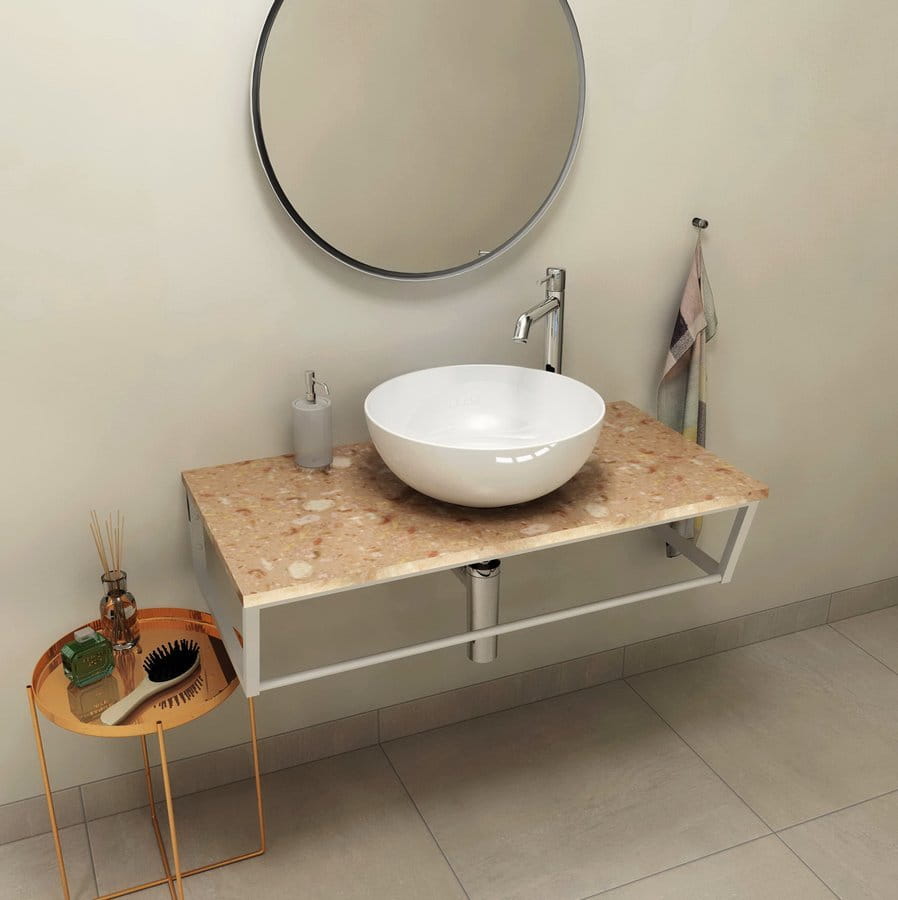 Blat łazienkowy w kolorze Rosa del Garda, wykonany z marmuru technicznego , o wymiarach 90x2x46 cm.