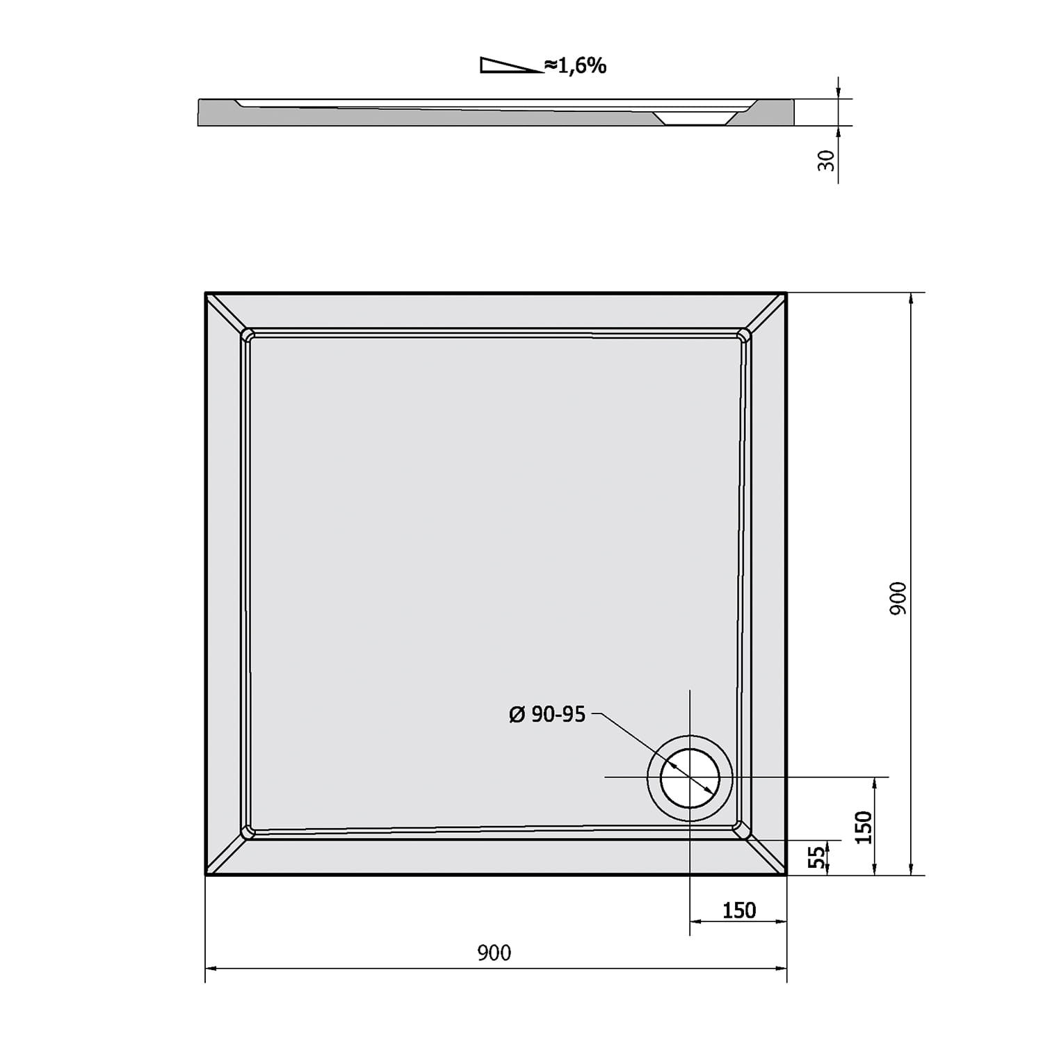Brodzik prysznicowy kwadratowy kompozytowy 90 x 90 cm AURA LIGHT 11221 Polysan