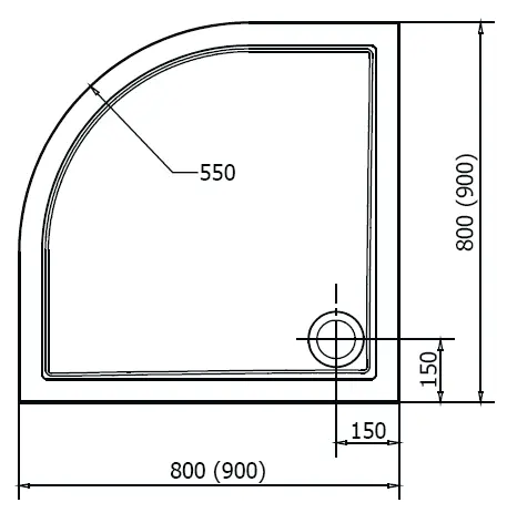 SERA Brodzik kompozytowy półokrągły R55 80x80 cm 40511 - rysunek techniczny