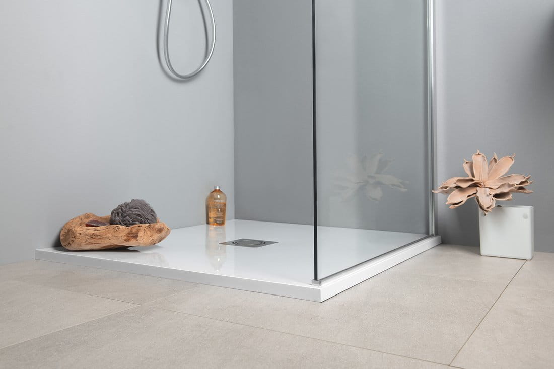 Brodzik z kompozytu marmurowego FLEXIA 100x90x3 cm, jest nowoczesnym rozwiązaniem znajdującym zastosowanie w kabinach i wnękach prysznicowych o nietypowych rozmiarach. Istnieje bowiem możliwość dostosowania go do wymaganych kształtów poprzez odpowiednie docięcie. Jego konstrukcja pozwala na stosowanie wycięć o nieregularnych kształtach.