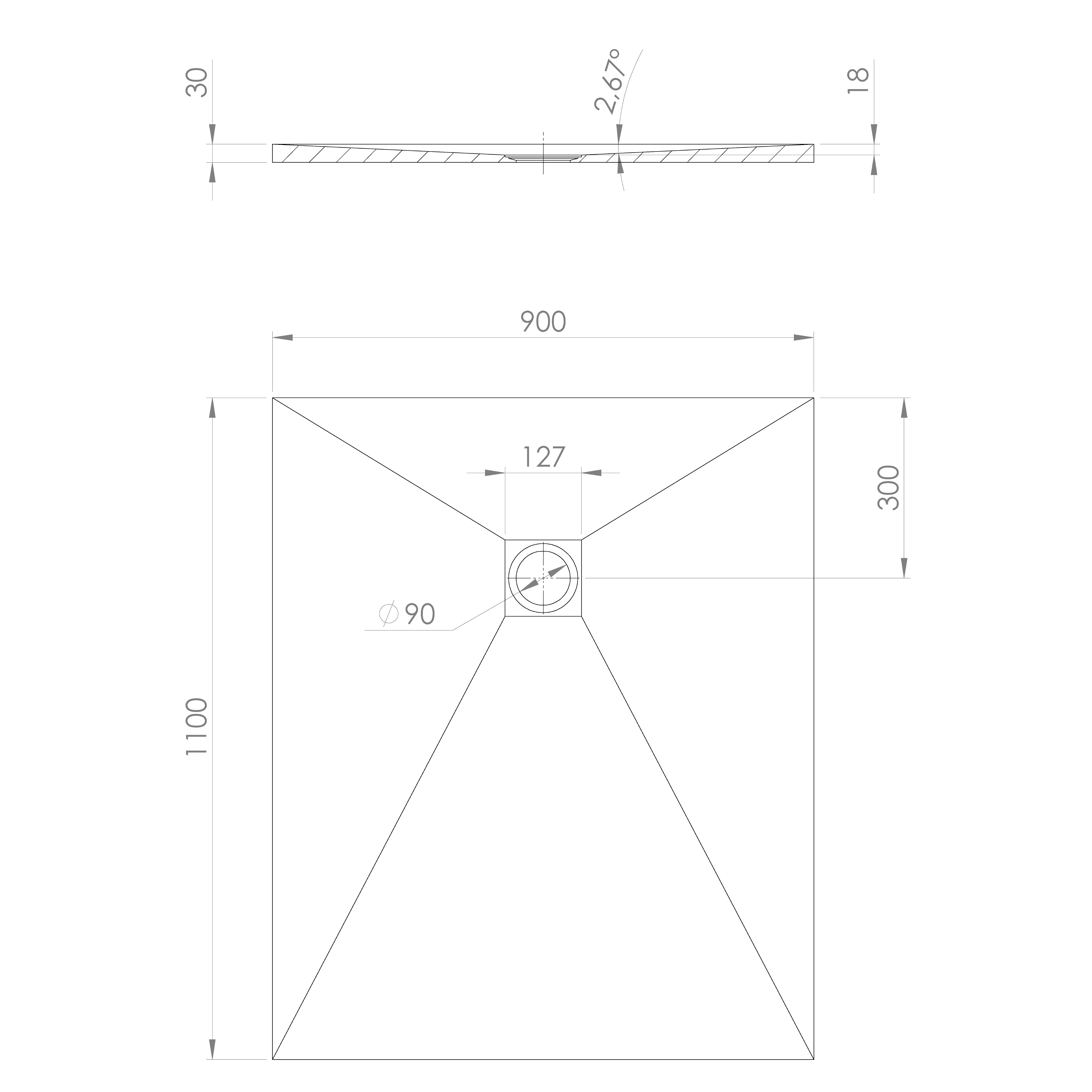 - Lokalizacja otworu na syfon jest stała i nie można jej zmienić. Wokół syfonu, ze względu na wytrzymałość brodzika, zaleca się, aby możliwe cięcie brodzika było co najmniej 15 cm od środka syfonu.
