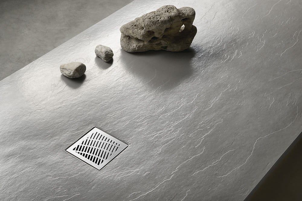 Brodziki z serii MITIA firmy GELCO mają nowoczesną strukturalną powierzchnię imitującą kamień. W ofercie jest biała, szara i czarna struktura struktura