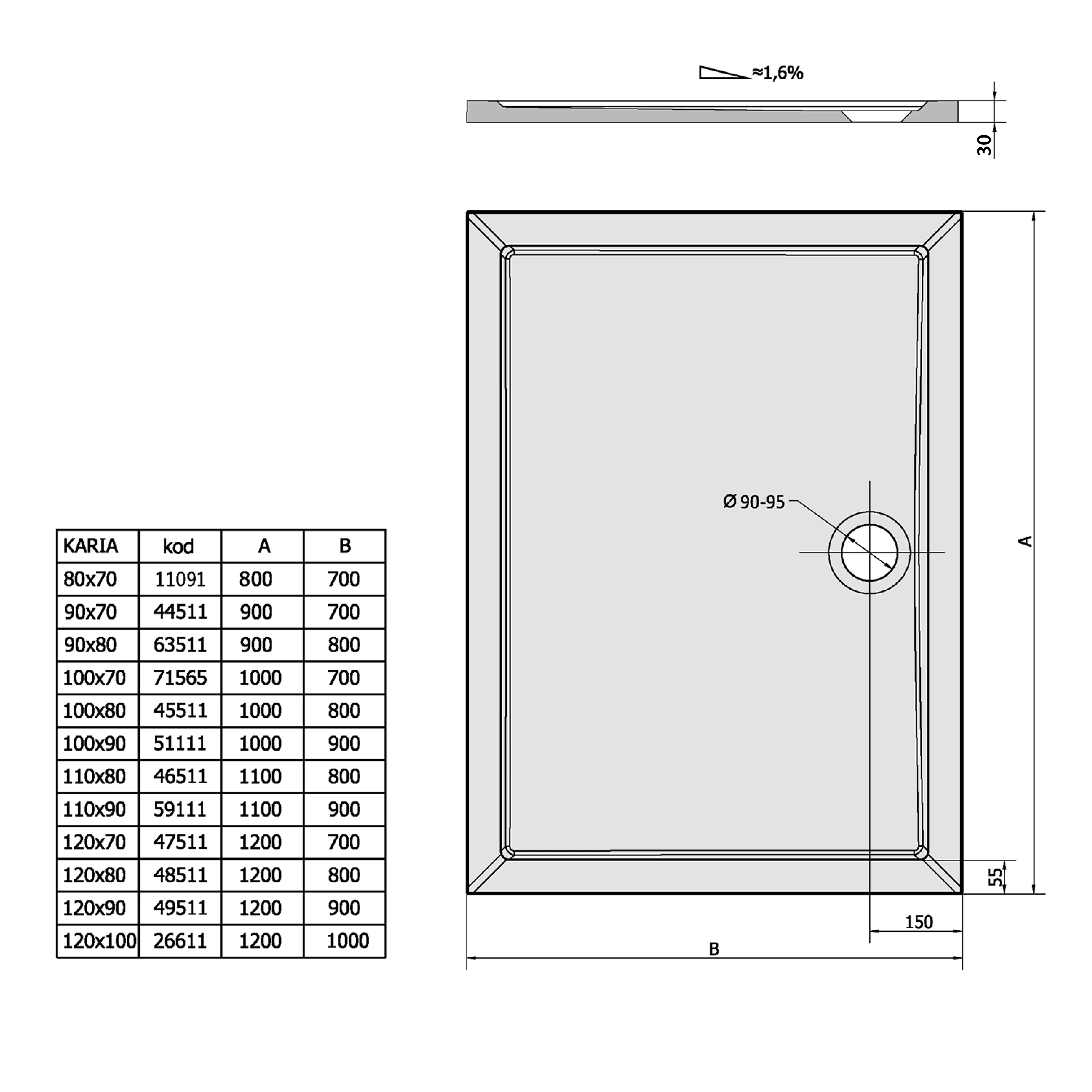 Najważniejsze cechy brodzika KARIA 80x70 cm