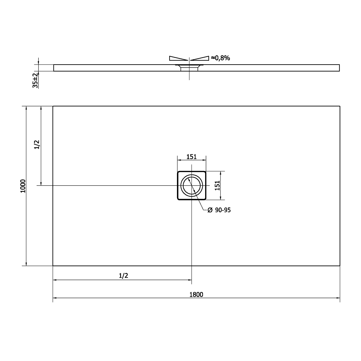 - Kwadratowe i prostokątne brodziki oferujemy w szerokości od 80 do 180 cm i długości od 70 do 100 cm