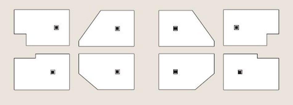 - Lokalizacja otworu na syfon jest stała i nie można jej zmienić. Wokół syfonu, ze względu na wytrzymałość brodzika, zaleca się, aby możliwe cięcie brodzika było co najmniej 15 cm od środka syfonu. Flexia nie może być instalowana pod płytki z powodu dylatacji i musi być pokryta klejem budowlanym lub silikonem w całym obszarze ze względu na swoją wytrzymałość.