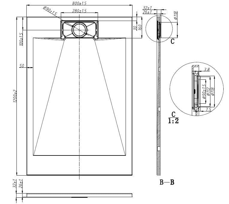 Brodzik prysznicowy prostokątny starylowy 120 x 80 x 2,6 cm SMC 1280W Sanotechnik