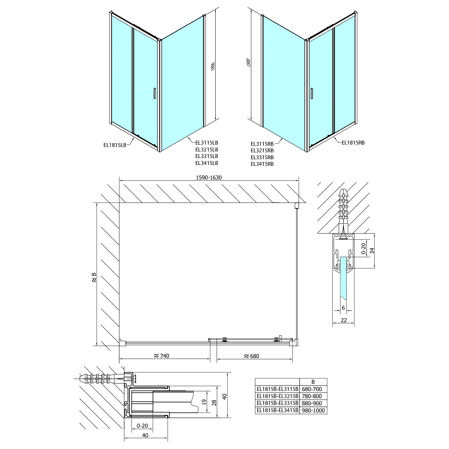 - EASY BLACK drzwi prysznicowe do wnęki przesuwne 160x190 cm, szkło czyste EL1815B