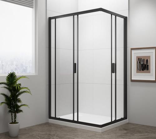 Czarna kabina prysznicowa EASY BLACK 900x800 mm - przesuwne drzwi, szkło czyste