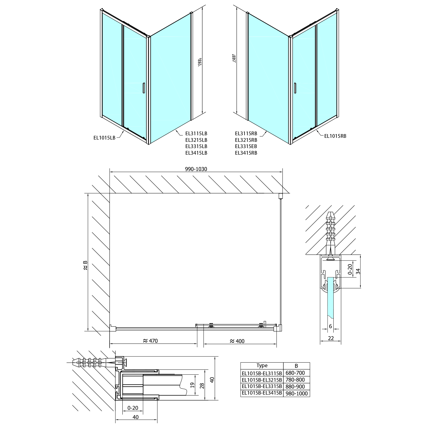 Seria oferuje różne warianty - przesuwne, składane i obrotowe drzwi - które pozwalają optymalnie zagospodarować przestrzeń łazienki. Profile w kolorze czarnym matowym podkreślają podkreśla elegancki charakter kabiny, a uniwersalny montaż sprawia, że drzwi można zamontować zarówno jako lewe, jak i prawe.