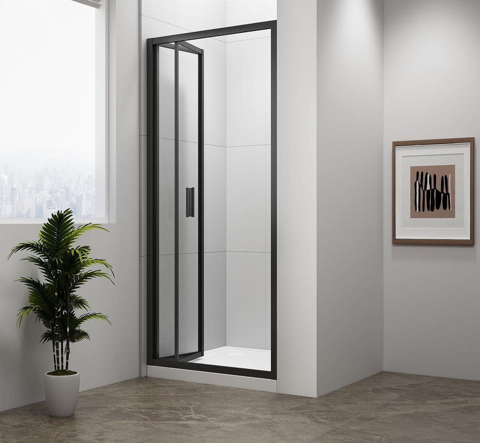 Czarne drzwi prysznicowe składane EASY BLACK 800 mm - szkło czyste