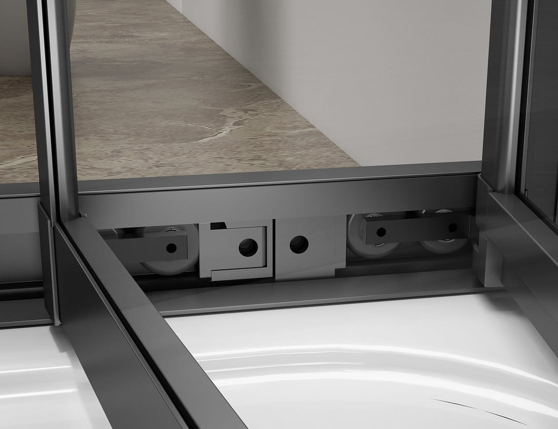 Kabiny prysznicowe z serii EASY BLACK to proste, eleganckie i oszczędne rozwiązanie do każdej łazienki. Drzwi składane poruszają się na podwójnych rolkach łożyskowanych, co zapewnia cichą i bezproblemową pracę przez wiele lat. Dolne rolki wyposażone są w system uchylania, który umożliwia szybkie i wygodne czyszczenie. Dzięki solidnym profilom konstrukcja gwarantuje szczelność i ochronę przed wydostawaniem się wody poza kabinę.