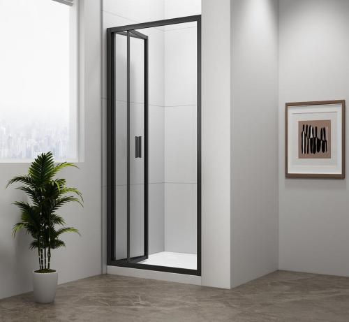 Czarne drzwi prysznicowe składane EASY BLACK 900 mm - szkło czyste