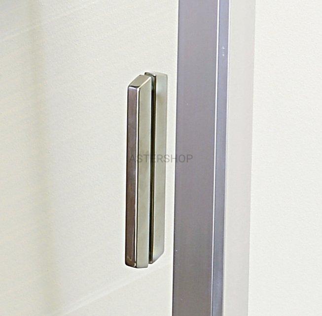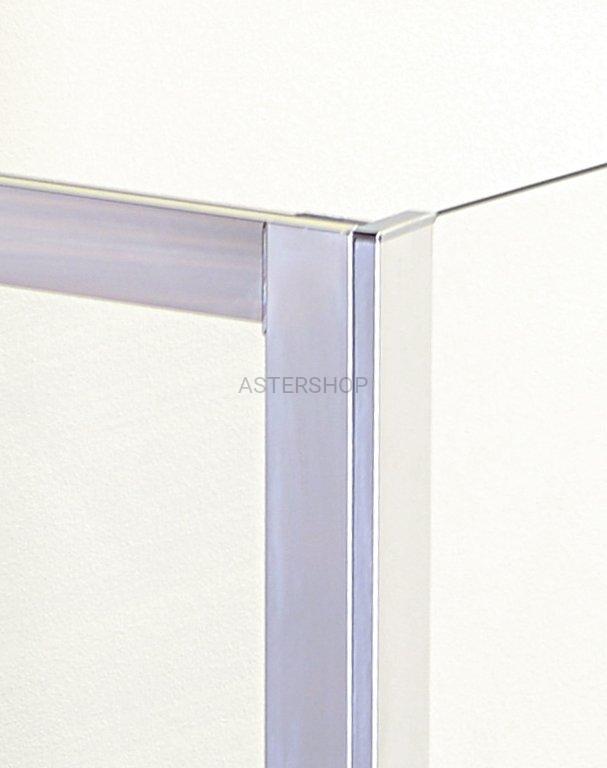 Kwadratowe profile, wąskie listwy, elegancki uchwyt zapewniają kabinie niepowtarzalny wygląd. Drzwi zawieszone na podwójnych rolkach poruszających się na estetycznie wyprofilowanej szynie zapewniają długotrwałe bezawaryjne użytkowanie. Profile wykonane z polerowanego aluminium.