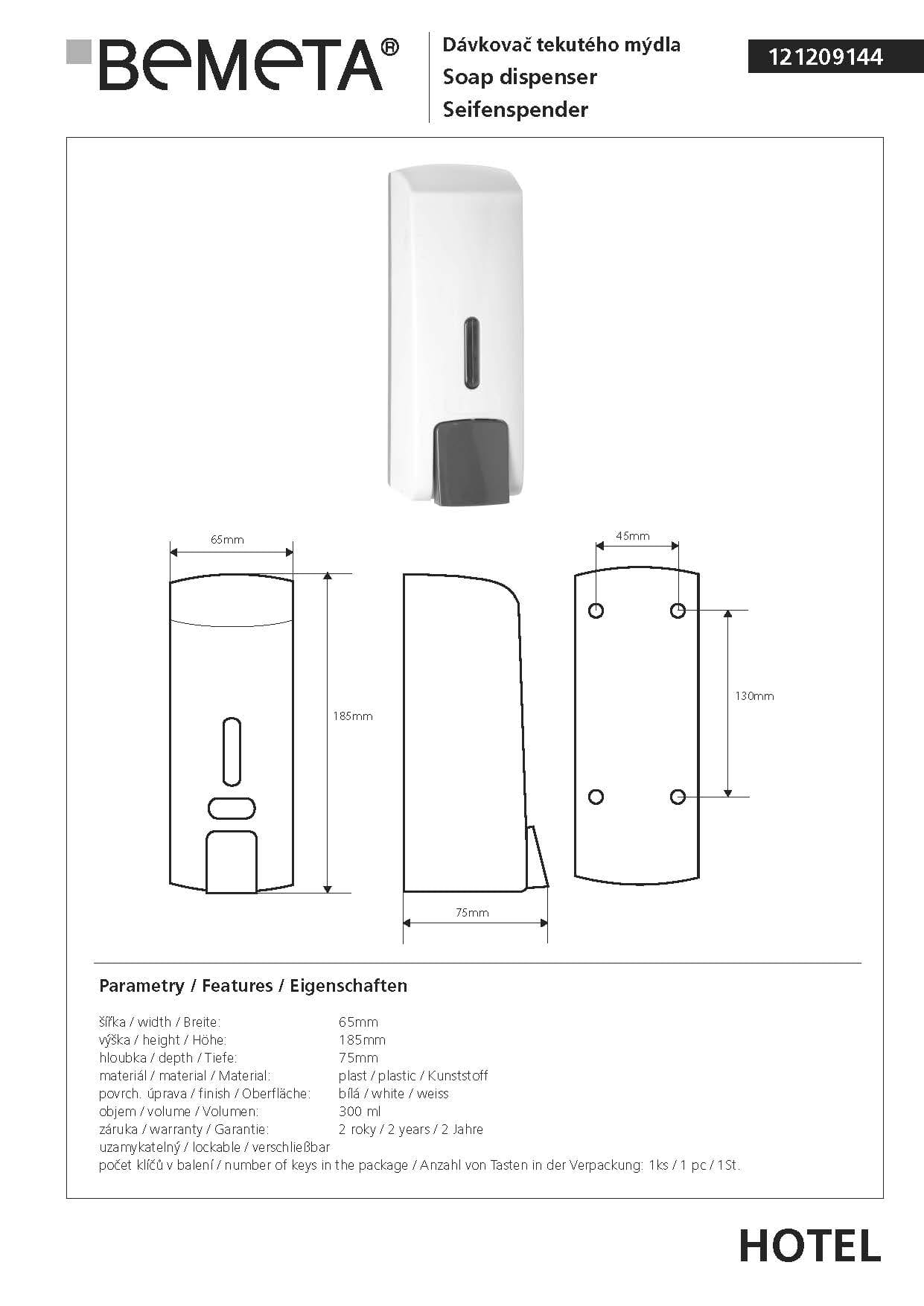 Dozownik do mydła 300 ml biały 121209144 Bemeta