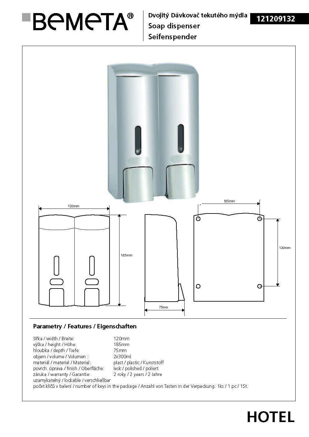 Dozownik do mydła podwójny 2 x 300 ml 121209132 Bemeta