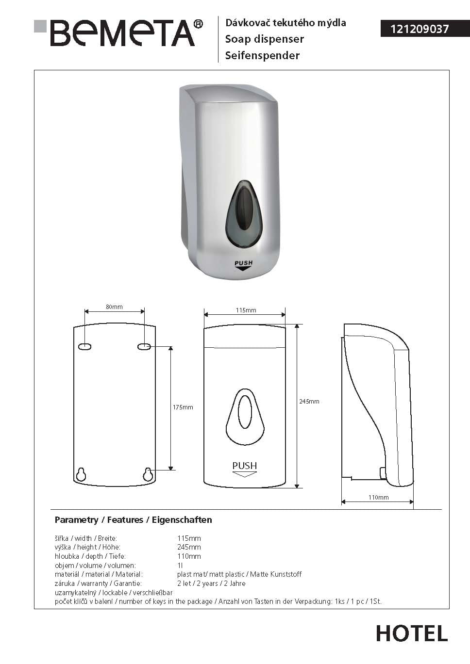 Dozownik do mydła w pianie 1000 ml srebrny matowy 121209407 Bemeta