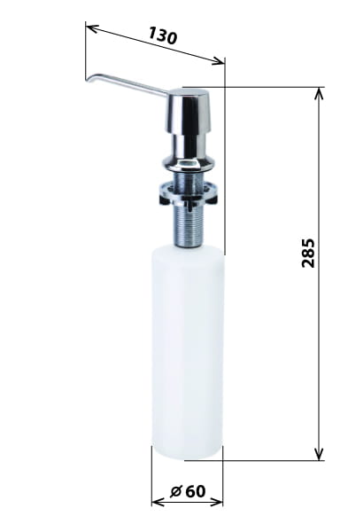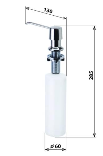 Dozownik do mydła mocowany pod blatem o pojemności 470ml i wymiarach 62x287x125 mm.