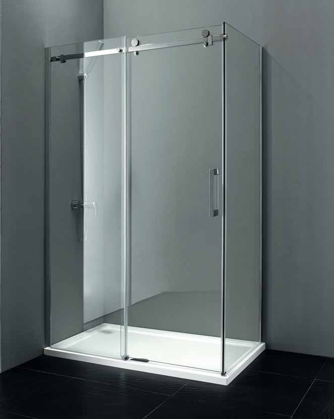Szkło bezpieczne o grubości 8 mm. Szkło poddawane obróbce nanotechnologicznej i pokrywane dwustronnie warstwą "antidrop" zabezpieczającą osadzanie się kamienia wapiennego i osadów mydlanych w standardzie, bez dodatkowej opłaty.