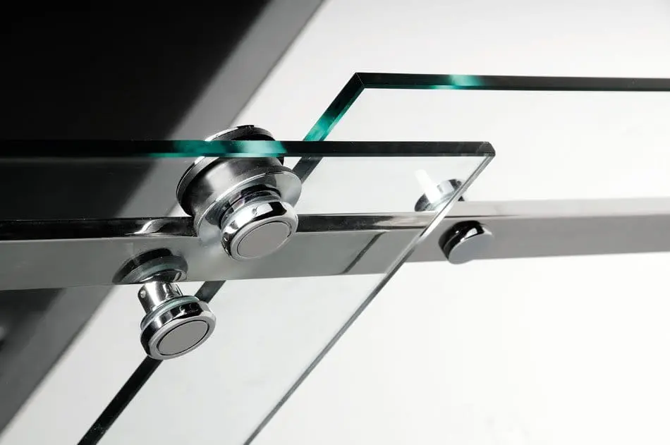 Szkło bezpieczne o grubości 8 mm. Szkło poddawane obróbce nanotechnologicznej i pokrywane dwustronnie warstwą "antidrop" zabezpieczającą osadzanie się kamienia wapiennego i osadów mydlanych w standardzie, bez dodatkowej opłaty.