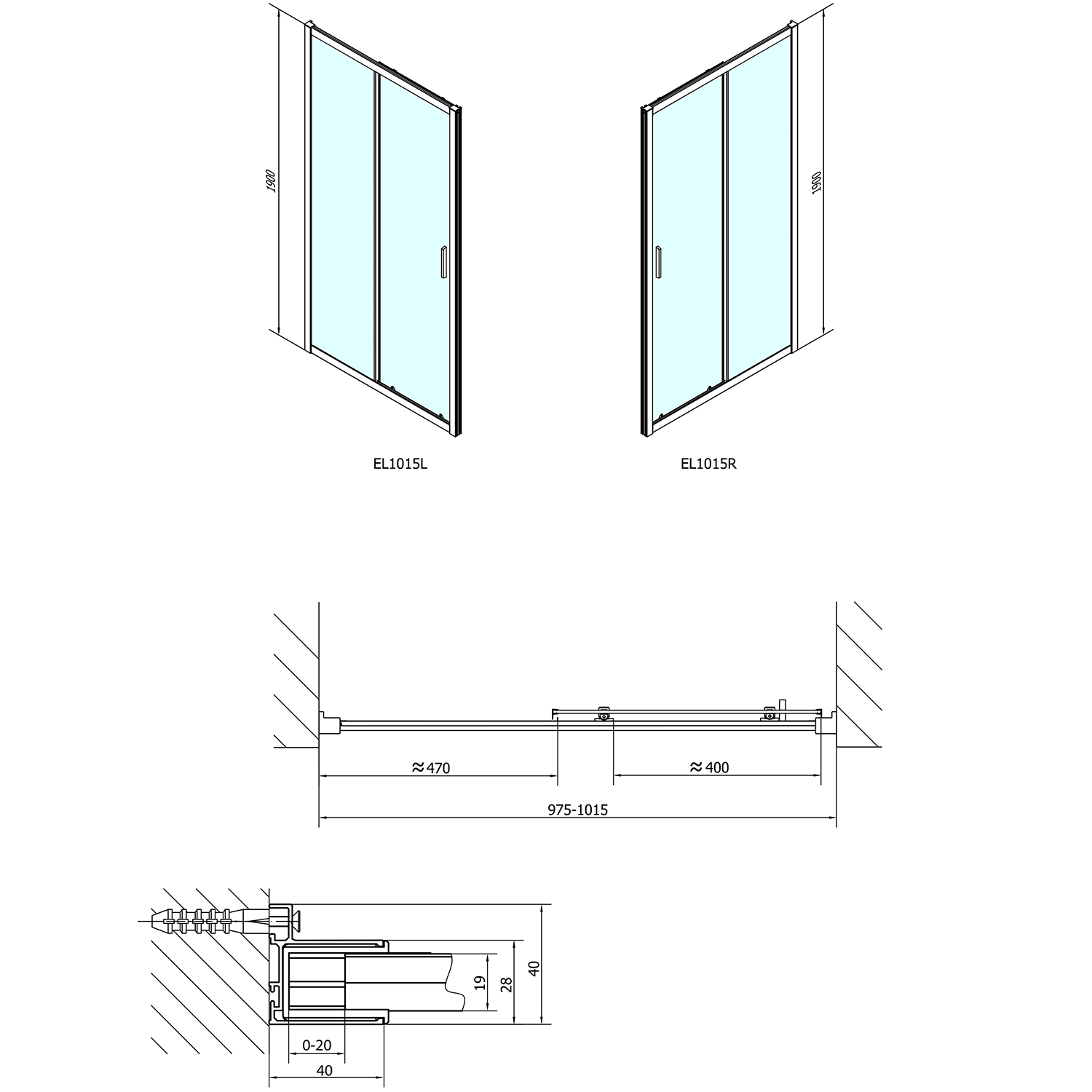 - Dzięki profilowi rozszerzającemu EL825 wymiar montażowy drzwi do wnęki można zwiększyć z każdej strony o 25 mm, łącznie o 50 mm