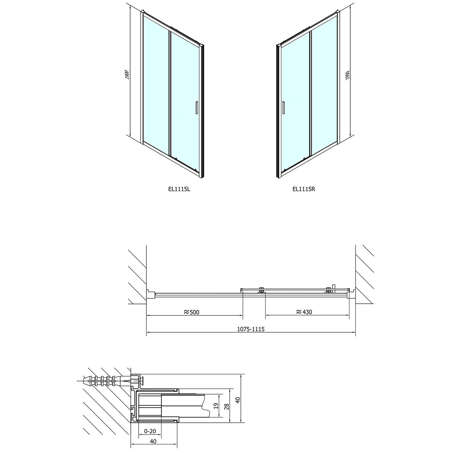 • Dzięki profilowi rozszerzającemu EL825 wymiar montażowy drzwi do wnęki można zwiększyć z każdej strony o 25 mm, łącznie o 50 mm