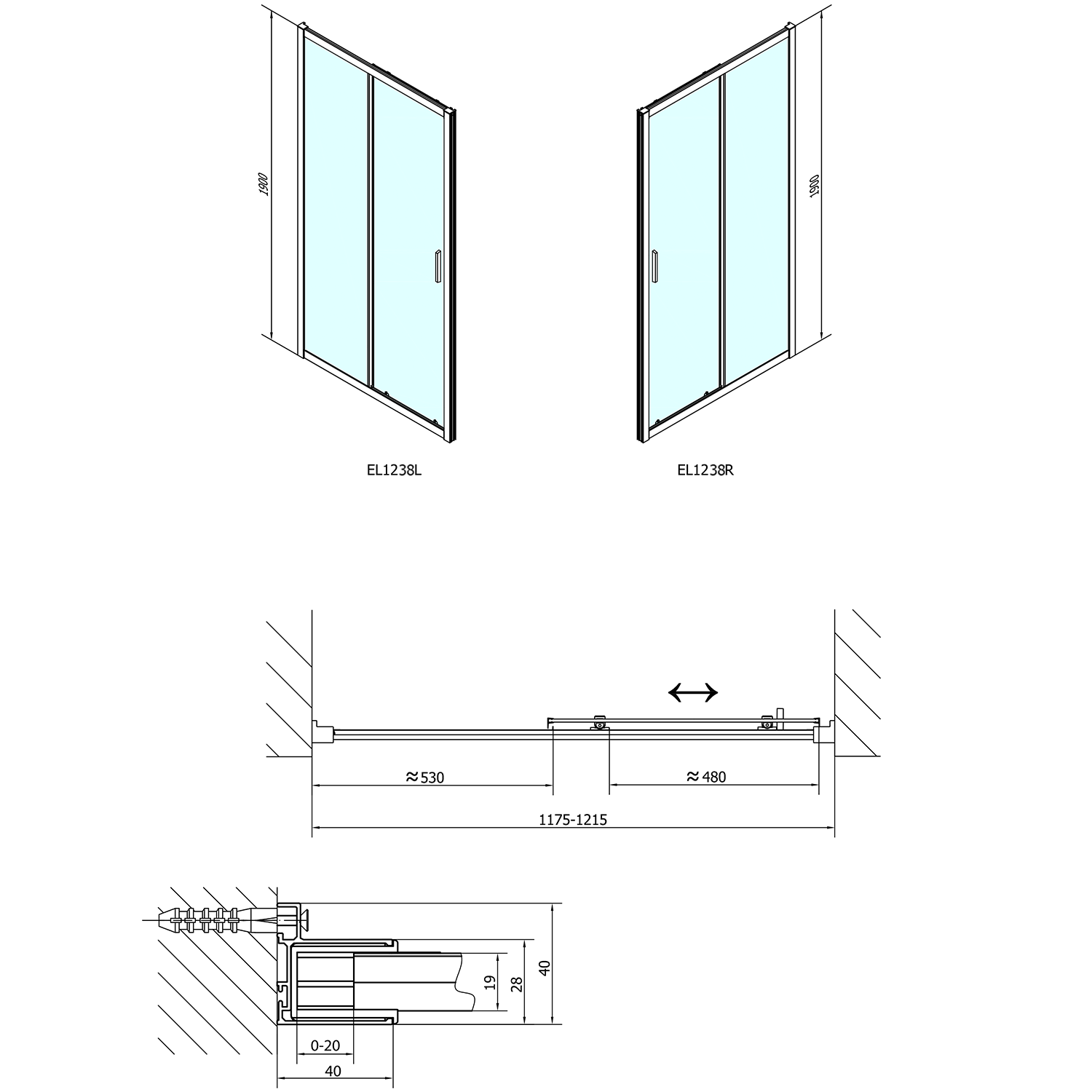 - Dzięki profilowi rozszerzającemu EL825 wymiar montażowy drzwi do wnęki można zwiększyć z każdej strony o 25 mm, łącznie o 50 mm