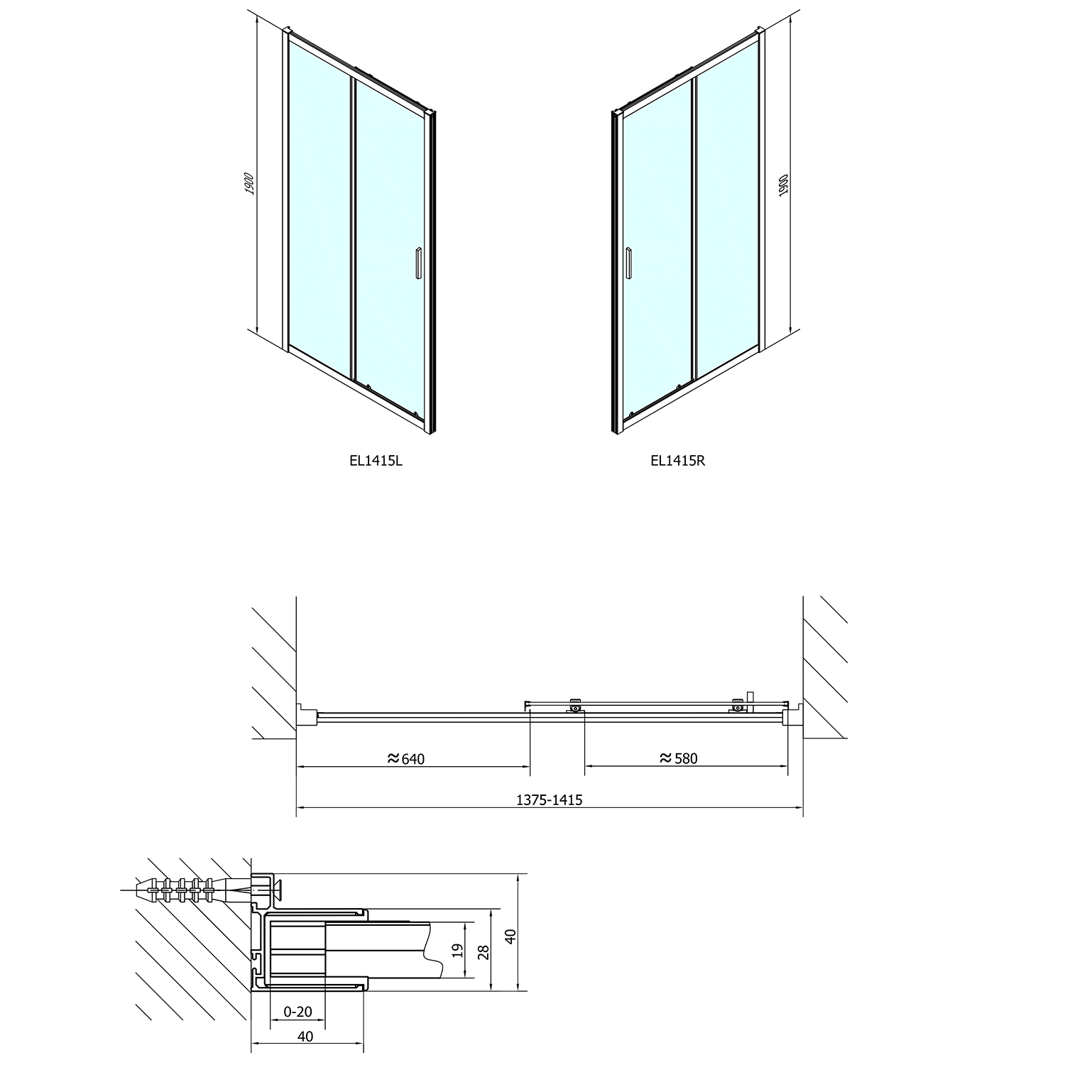 Drzwi prysznicowe do wnęki przesuwne 140 x 190 cm szkło czyste EASY EL1415 Polysan