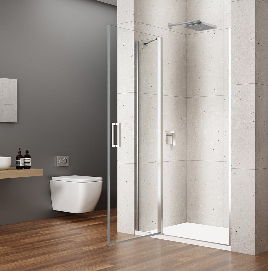 Drzwi prysznicowe skrzydłowe z częścią stałą uniwersalne (prawe i lewe).