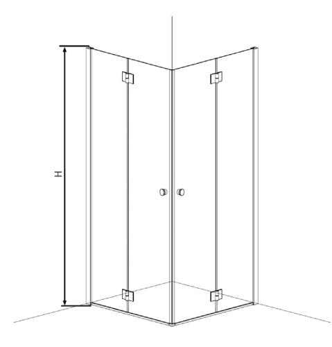 Kabina składa się z drzwi składanych lewych i prawych. Zdjęcie przedstawia przykładowe zestawienie kabiny o równych ścianach.