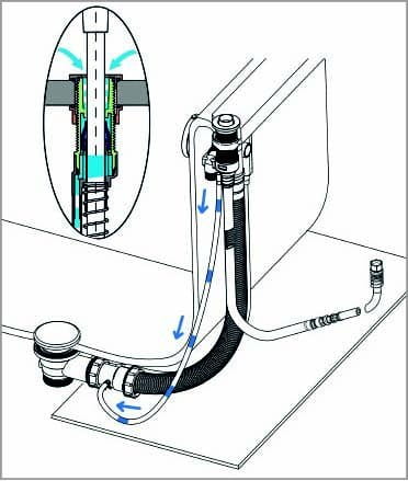 FLLOW ME - system wysuwania węża. Prysznic dzięki sprężynie ma ułatwiony powrót, a system drenażu zapobiega zaciekaniu wody pod wannę.