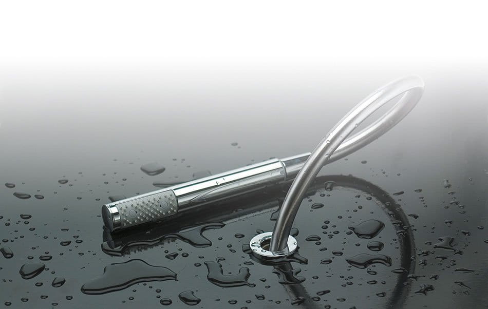 FLLOW ME - system wysuwania węża. Prysznic dzięki sprężynie ma ułatwiony powrót, a system drenażu zapobiega zaciekaniu wody pod wannę.