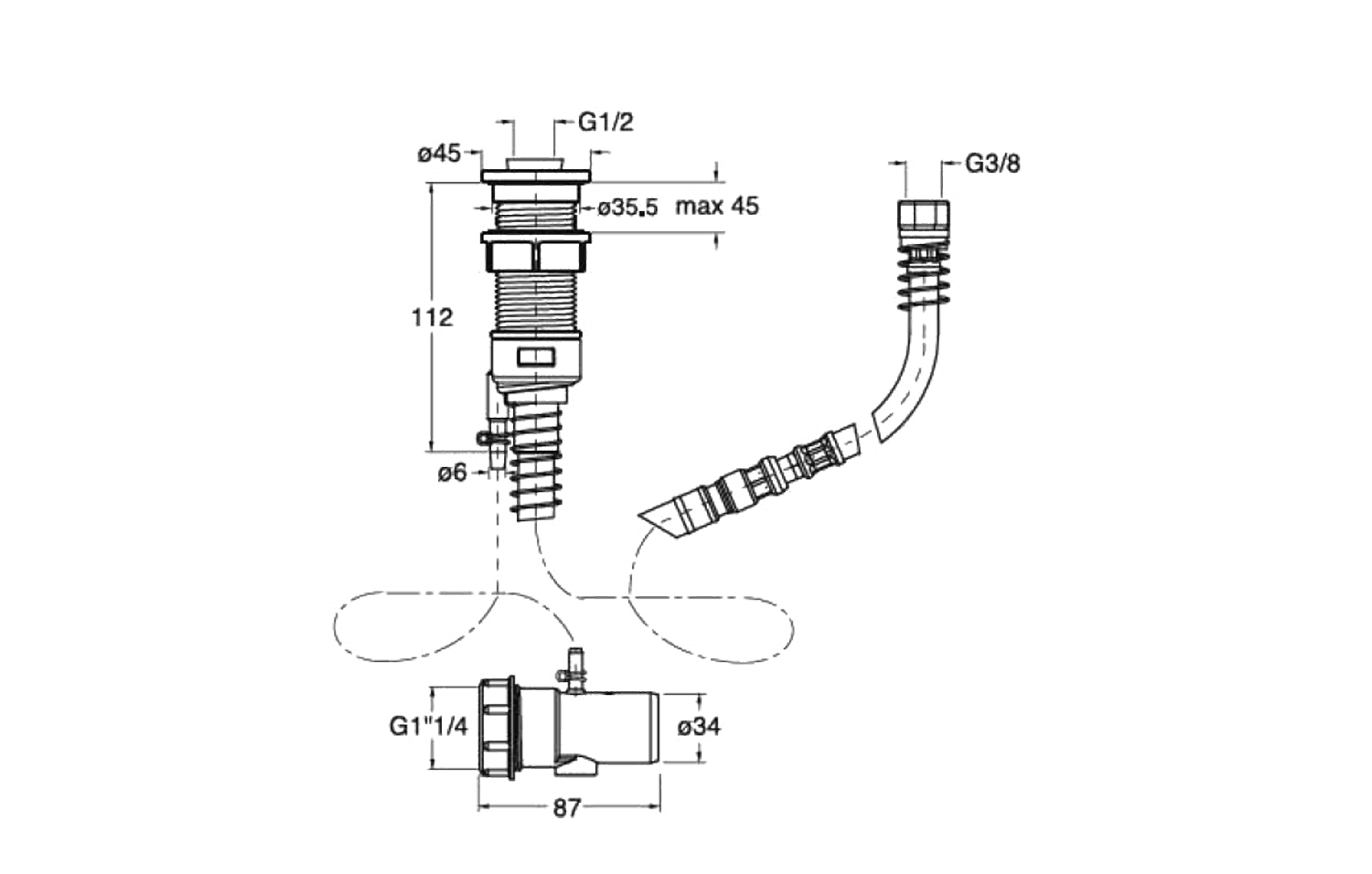 W komplecie przelotowy element drenażowy do podłączenia z odpływem (patrz rysunek).