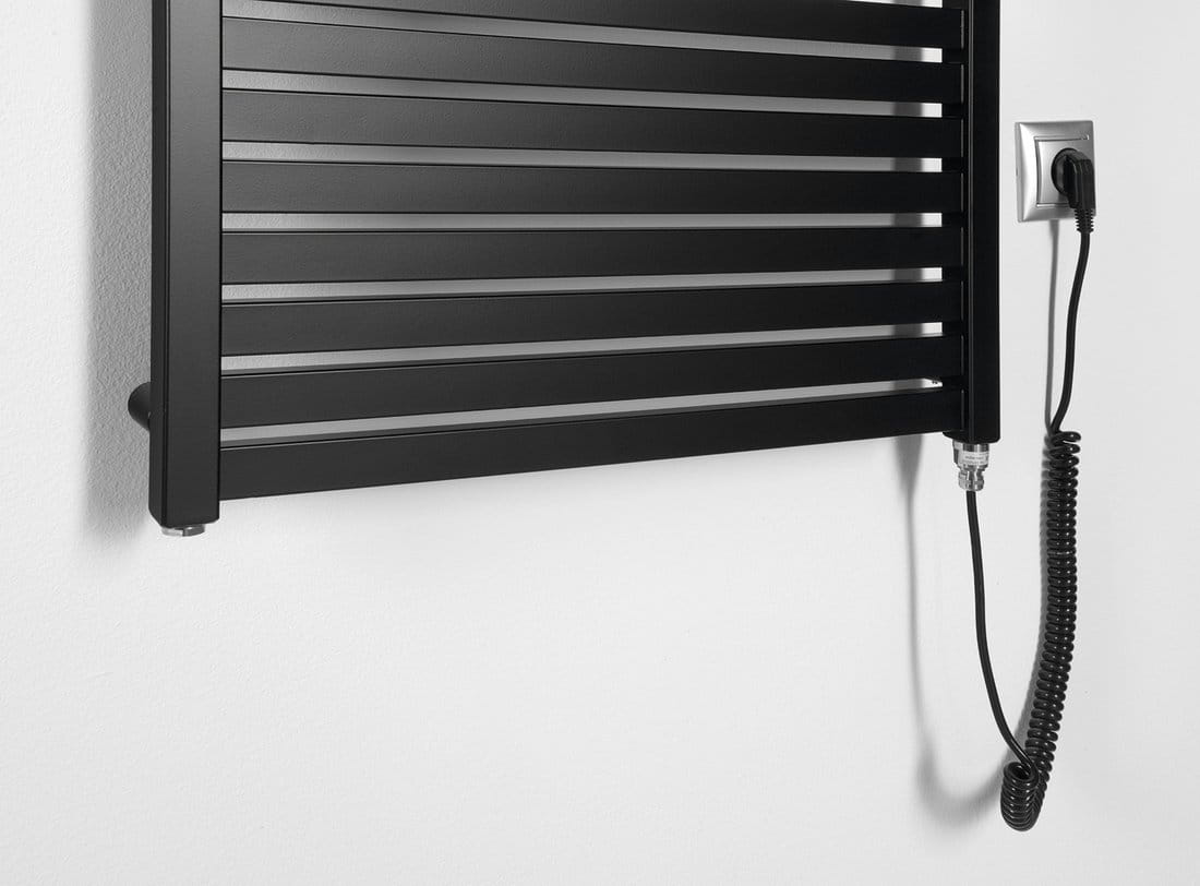 Seria grzejników elektrycznych TONDI-E wyróżnia się nowoczesnym wyglądem co zawdzięczamy płaskim profilom. Wykonana ze stali występuje w dwóch kolorach białym i czarnym matowym, pasuje do wystroju nowoczesnej łazienki. Montowany tradycyjnie jako wiszący.