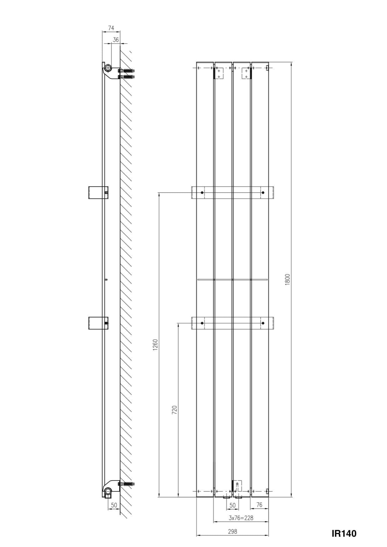 Grzejnik łazienkowy 298 x 1800 mm biały 614 W COLONNA IR140 Sapho