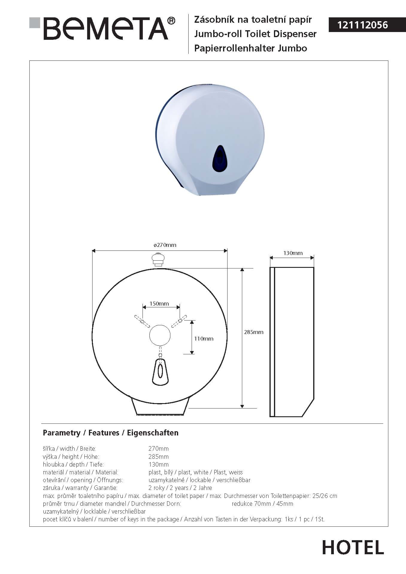 JUMBO Zasobnik na papier toaletowy 121112056 Bemeta