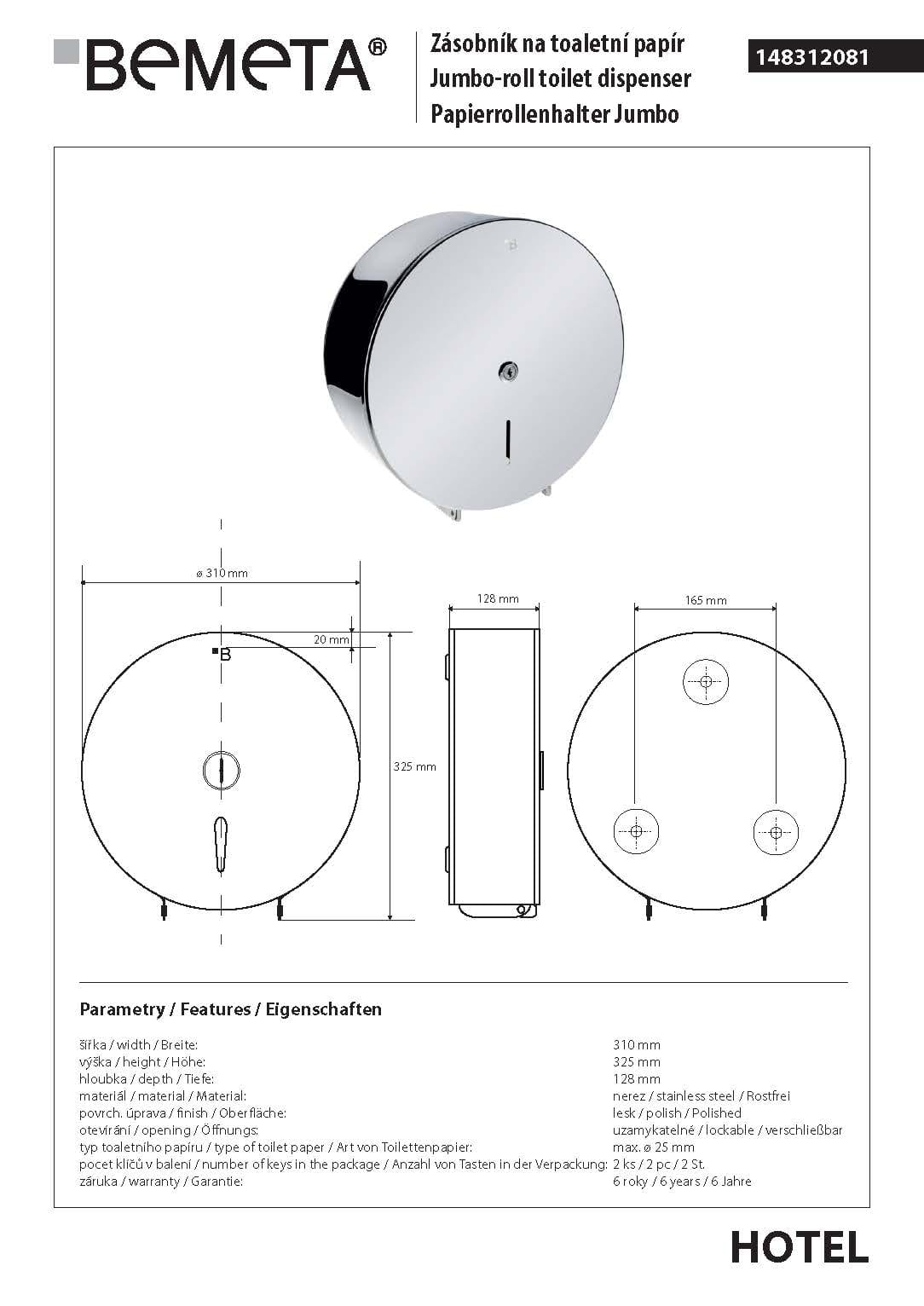 JUMBO Zasobnik na papier toaletowy ø31 cm stal nierdzewna 148312081 Bemeta