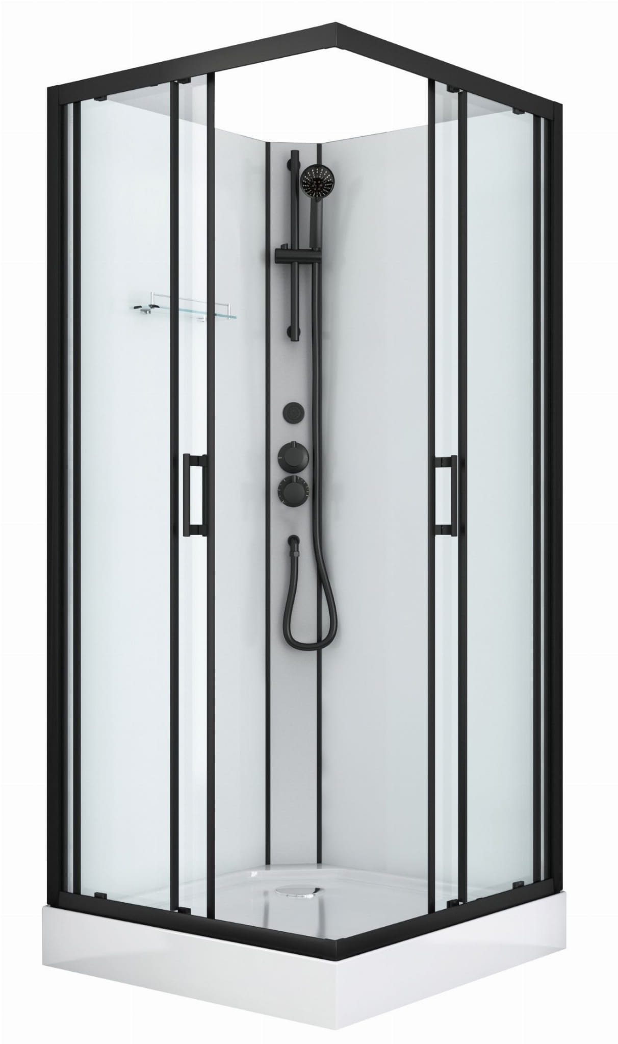 Czarna kabina prysznicowa kwadratowa wolnostojąca czterościenna 90 x 90 x 210 cm czarny Denver CL12B Sanotechnik