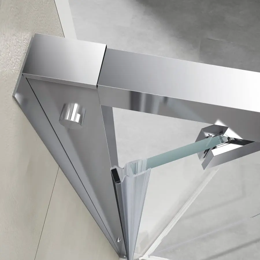 - Kwadratowe i prostokątne kabiny z wejściem narożnym, stworzysz łącząc dwoje drzwi przesuwnych w wejście narożne